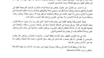العمّار أعلن من المركز الكاثوليكي رسالة البابا في اليوم العالمي للسلام بعنوان *السلام لكم جميعاً نحو سلامٍ مُجَرَّد من السّلاح ويُجَرِّد من السّلاح*