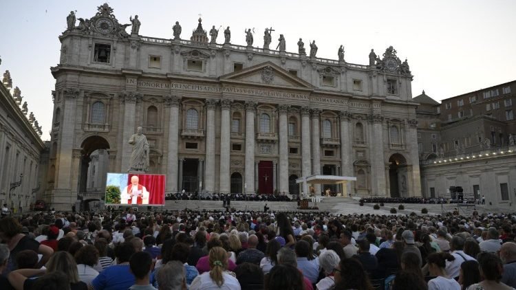قال البابا لاوُن الرابع عشر إنّ الرّوح الخالق الذي دعوناه في النشيد – Veni Creator Spiritus – هو نفسه الرّوح الذي حلّ على يسوع، الرائد الصامت لرسالته: “رُوحُ الرَّبِّ عَلَيَّ”. وحين نطلب منه أن يزور عقولنا، ويكثّر الألسنة، ويُلهب الحواسّ، ويُفيض المحبّة، ويقوّي الأجساد، ويمنح السلام، فإنّنا نفتح ذواتنا لملكوت الله. وهذا هو الارتداد بحسب الإنجيل: أن نوجّه أنظارنا نحو الملكوت الذي أصبح قريبًا. في يسوع نرى، ومن يسوع نسمع، أنّ كلّ شيء يتحوّل، لأنّ الله يملك، لأنّ الله قريب. في عشيّة الصلاة هذه بمناسبة عيد العنصرة، نحن نشارك بعمق في قرب الله، وروحه الذي يوحّد قصصنا الشخصية بقصة يسوع. نحن نشارك، في الأمور الجديدة التي يصنعها الله، لكي تتحقّق مشيئته التي هي مشيئة حياة وتنتصر على إرادات الموت.