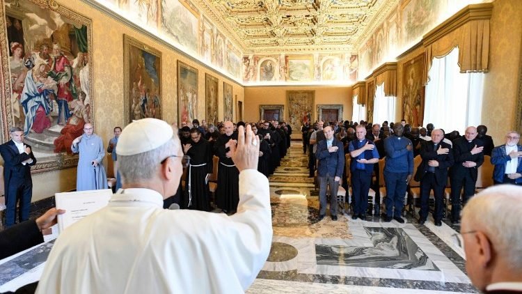 استقبل قداسة البابا لاوُن الرابع عشر، في قاعة كليمينتينا بالقصر الرسولي، المشاركين في المجمع العام لكلٍّ من الرهبانية الثالثة للقديس فرنسيس الأسيزي، وجمعية الإرساليات الإفريقية، وخدّام البارقليط. لقاءٌ تميّز بالكثافة الروحية والعمق الراعوي، وفي كلمته التي وجّهها للحاضرين، قال البابا لاوُن الرابع عشر كثيرون منكم يشاركون في هذا اللقاء في سياق انعقاد مجمعكم العام، في لحظة مفصلية من حياتكم وحياة الكنيسة جمعاء. فلنصلِّ أوّلاً من أجل معاهدكم، ومن أجل جميع الأشخاص المكرّسين، لكي “يوجّهوا أنظارهم إلى الله وحده وفوق كل شيء، فيوحّدوا التأمّل، الذي به يتّحدون بالله بالعقل والقلب، مع الحماس الرسولي، الذي يحملهم على التعاون في عمل الفداء”.