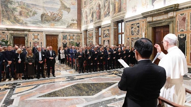 وفي ختام كلمته قال البابا لضيوفه إنهم يمكنهم من خلال عملهم أن يكونوا حاجزا أمام مَن يسعون من خلال الكذب إلى خلق انقسامات للسيادة بالتفرقة، وأن يكونوا سدا أمام الرمال المتحركة للتقريب وما بعد الحقيقة.