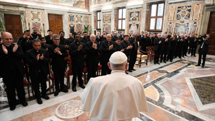 استهل الحبر الأعظم خطابه مرحبا بضيوفه ومعربا عن سروره للقائهم في الفاتيكان لمناسبة انعقاد مجمعهم العام وخص بالذكر الرئيس العام الأب بلكارسكي الذي أُعيد انتخابه لولاية ثانية. ولفت البابا بعدها إلى أن هذه الجمعية الرهبانية أبصرت النور في أستي مشيرا إلى القاسم المشترك الذي يجمعه بها لكون المدينة مسقط رأس أهله. وذكّر بأن أعضاء الجمعية الرهبانية ملتزمون في الحفاظ على المواهب التي نالوها وجعلها تثمر واضعين إياها في خدمة الأخوة والأخوات المحتاجين. وقال إن الامتنان والمسؤولية هما صفتان ميزتا حياة القديس يوسف الذي كان حامياً للعائلة المقدسة ومثالا وهو اليوم مصدر إلهام بالنسبة للجمعية.