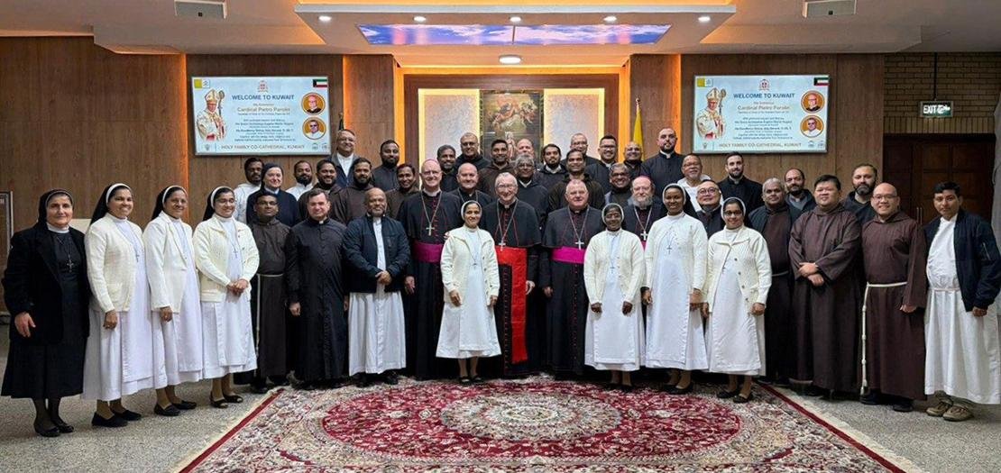 والتقى الكاردينال بارولين بالكهنة والرهبان والراهبات في كونكاتدرائية العائلة المقدسة في مدينة الكويت. وفي كلمته، نقل تحية البابا لاون الرابع عشر وتشجيعه لهم، معربًا عن امتنانه لخدمتهم التي يؤدّونها غالبًا بعيدًا عن أوطانهم وفي ظروف تتّسم بالتحديات.