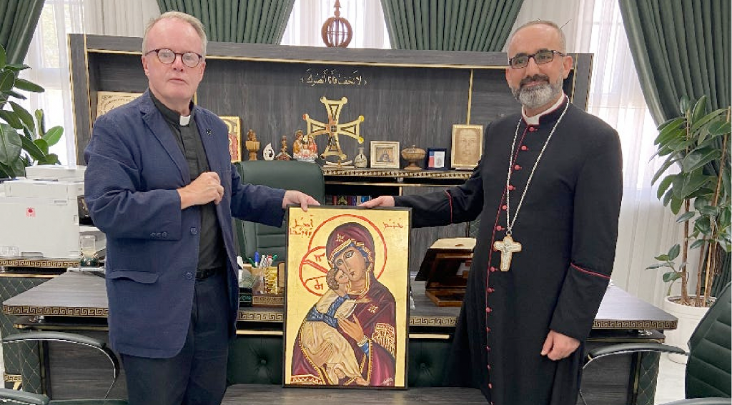 الأيقونة التي كتبها الشمّاس السرياني الكاثوليكي إبراهيم يلدو – النّازح بدوره من مسقط رأسه برطلة سنة 2014 – تحمل النقش الآرامي “مريم، أمّ المُضطَهَدين”. ويرى المطران بنديكتوس يونان حنو، رئيس أبرشيّة الموصل للسريان الكاثوليك، أنّ هذا التوقيت مُتعمّد. “إنّها علامةٌ على ثبات الإيمان، حتّى في نفس المكان الذي دُنّست فيه أكبر مدننا المسيحيّة”. ويأمل حنو أن يحثّ هذا المزار مسيحيّي الغرب على الصلاة من أجل إخوانهم في الشرق الأوسط، وأن يتذكّروا أنّ جذور المسيحيّة عميقة في هذه الأرض، كما قال ذلك البابا لاون الرّابع عشر لمسيحيّي الشّرق منذ فترة.