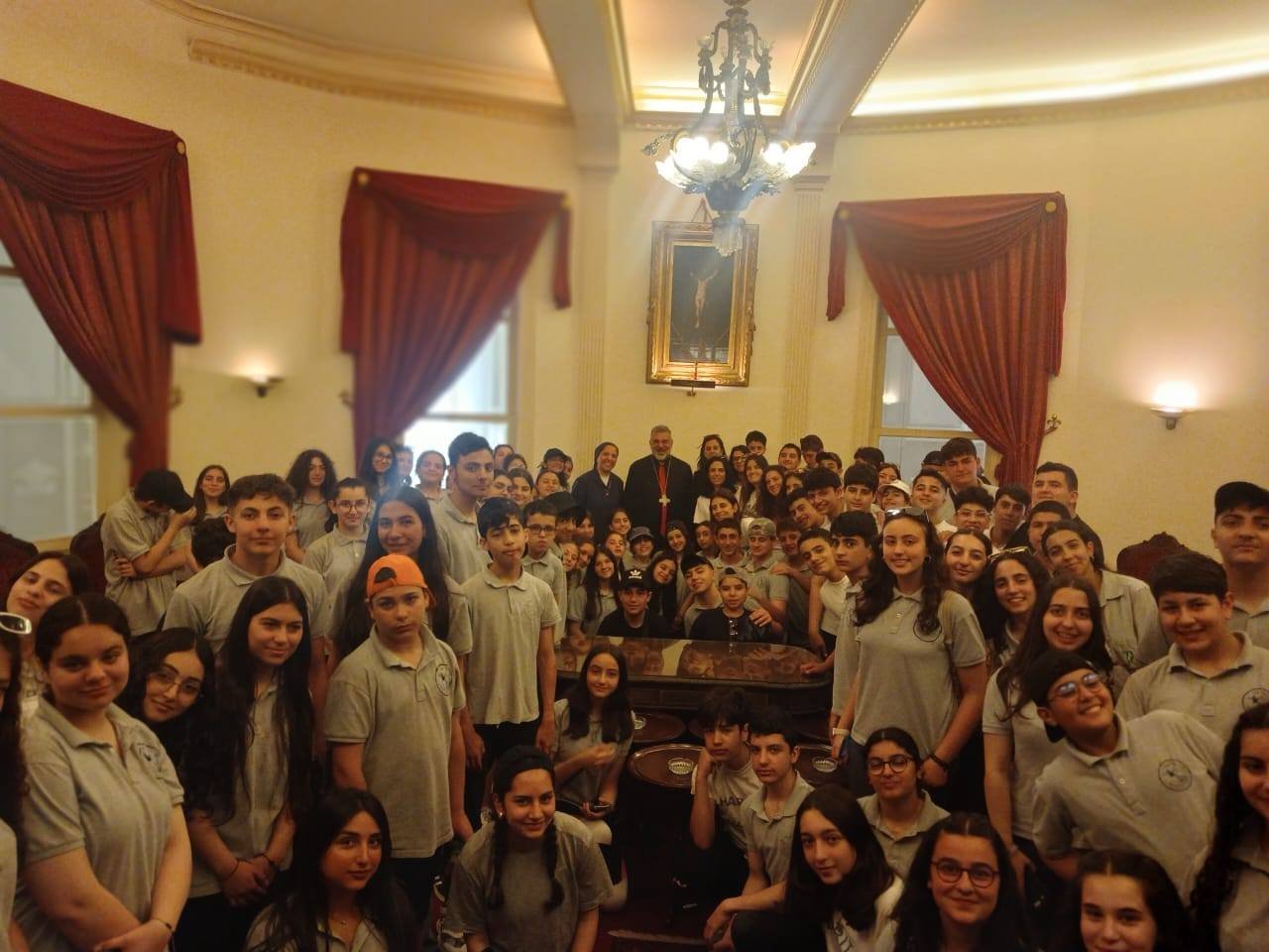 إستقبل رئيس أساقفة أبرشيّة طرابلس المارونيّة المطران يوسف سويف السامي الاحترام، في دار المطرانية – قلّاية الصليب، يوم الأربعاء الواقع فيه الثامن والعشرون من أيّار ٢٠٢٥، وفدًا من طلّاب مدرسة سيّدة السلام لراهبات المحبّة – القبيّات، لمناسبة إنهاء السنة الدراسيّة، ضمّ الأخت جوسلبن باخوس وعددًا من المعلّمات، ومئةً وعَشَرَةَ طلّابٍ من القسم التكميليّ.