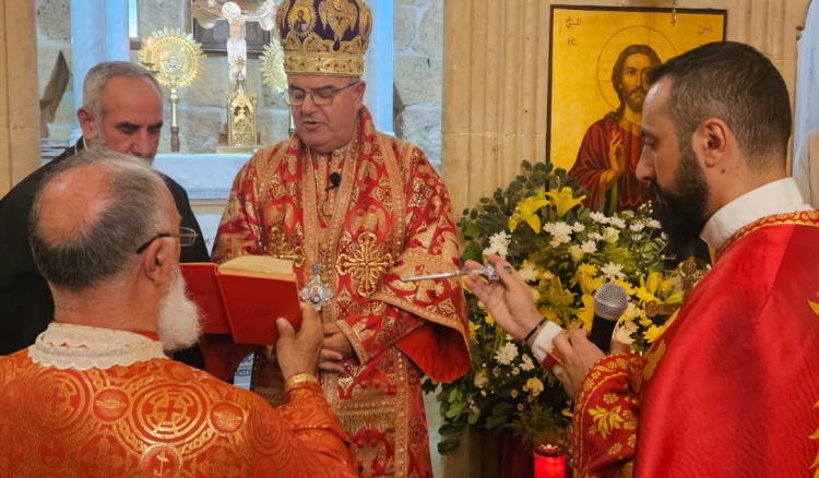 وبعد القداس، تقبل بقعوني والآباء تهاني العيد في صالون الكنيسة من المؤمنين.