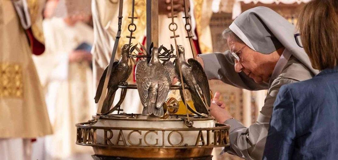 وخلال تلاوة المسبحة (أسرار المجد)، سيقوم مؤمنون من قارات مختلفة -إفريقيا، والأمريكيتين، وآسيا، وأوروبا، وأوقيانوسيا- بإضاءة الشموع من شعلة «مصباح السلام» في أسيزي، الذي يظلّ مضاءً بشكل دائم عند قبر القديس فرنسيس الأسيزي.