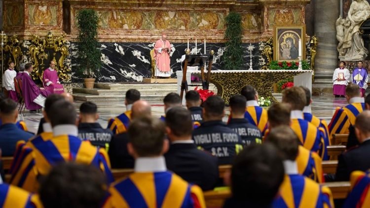 في ختام عظته احتفالاً بيوبيل الحرس السويسري والدرك ورجال الإطفاء في دولة حاضرة الفاتيكان أوكل الكاردينال بارولين المشاركين في القداس إلى شفاعة العذراء مريم، قائلا إنها مصدر الفرح وسبب سعادتنا، مضيفا أننا نتعلم منها أن نحتفظ في قلوبنا على إيمان ساكن ومطمئن، وعلى رجاء مفعم بالثقة اللذين يمكناننا من عيش حياة سعيدة حتى وسط المحن.