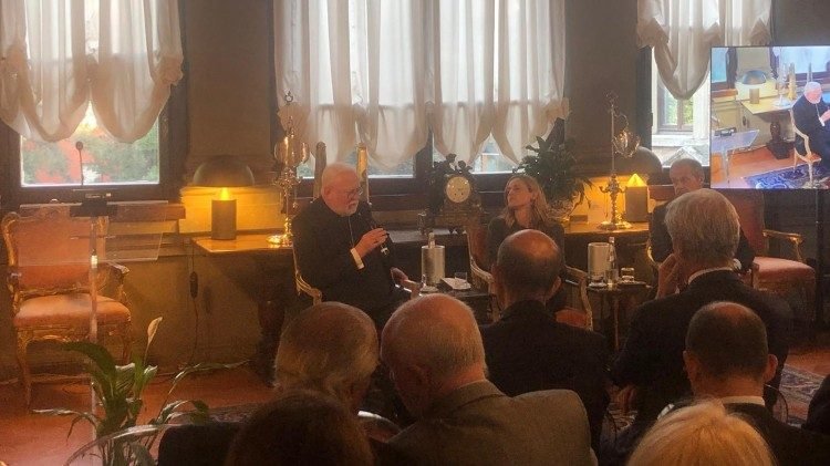 وبعد كلمات الترحيب التي ألقاها السفير الإيطالي لدى الكرسي الرسولي فرانشيسكو دي نيتّو، انطلقت المحادثة من النتيجة الإيجابية للمفاوضات في الشرق الأوسط والتوقيع على الاتفاق حول المرحلة الأولى من خطة البيت الأبيض، الذي تمّ في شرم الشيخ بمصر. وقال غالاغر: “لقد تعلمنا في هذه السنوات أن السلام هو أحد الخيارات، قرار يمكننا أن نصفه بأنه قرار متعالٍ، ولكن يجب أن تتبعه خيارات واتفاقات أخرى تجعله ملموسًا”. وأوضح أن الكرسي الرسولي، في هذا الإطار، “قد قام بكل ما كان في وسعه. لم تتح الفرصة للقيام بدور الوسيط – كما أعترف – لكننا عملنا دائمًا من أجل تشجيع الحوار بين الأطراف والمطالبة باحترام القانون الدولي”. وأضاف أن النداءات التي أطلقها كلٌّ من البابا فرنسيس سابقًا والبابا لاوُن الرابع عشر حاليًا كانت متواصلة ضمن ما يُعرف بـ “الدبلوماسية العلنية”، فضلًا عن الدعم الذي قدمته الكنيسة “لجماعاتنا المحلية، ونذكر المكالمات اليومية التي أجراها البابا فرنسيس مع رعية العائلة المقدسة في مدينة غزة”، بالإضافة إلى مبادرات البطريركية اللاتينية في القدس.