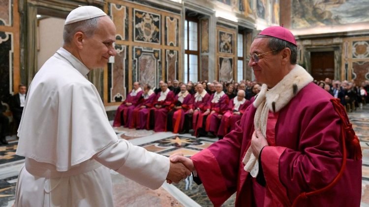 بمناسبة افتتاح السنة القضائية استقبل قداسة البابا لاوُن الرابع عشر صباح يوم الاثنين في القصر الرسولي بالفاتيكان أعضاء محكمة الروتا الرومانية الرسولية، وللمناسبة وجّه الأب الأقدس كلمة رحَّب بها بضيوفه وقال في لقائنا الأول هذا، أود أولاً وقبل كل شيء أن أعرب عن تقديري لعملكم، الذي يعد خدمة ثمينة للوظيفة القضائية العالمية المناطة بالبابا، والتي دعاكم الرب للمشاركة فيها.