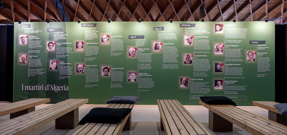 يروي المعرض قصة تسعة عشر راهبًا وكاهنًا قُتلوا في الجزائر قبل ثلاثين عامًا، ضحايا الحرب التي اندلعت بين القوات المسلحة الجزائرية وجماعات إسلامية مسلّحة. وقد حظيت قضية اختطاف وقتل رهبان تيبحيرين باهتمام عالمي واسع بعد فيلم «رجال وآلهة» للمخرج كزافييه بوفوا. وأدّت «العشرية السوداء» في الجزائر (1992–2002) إلى سقوط نحو 150 ألف ضحية. وفي عام 2018، أُعلن الشهداء المسيحيون التسعة عشر طوباويين بقرار من البابا فرنسيس.