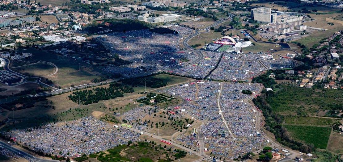 من بين الأحداث اليوبيلية التي تجمع الكاثوليك من جميع أنحاء العالم في روما كل 25 عامًا، يُعدّ يوبيل الشبيبة الأكثر رمزيةً من خلال احتفالاته ونشاطاته. وقد أُقيم اليوبيل هذا العام في ساحة تور فيرغاتا، حيث تميّز بالمسرح ذات المذبح الضخم، الذي بلغت مساحته 1400 متر مربع بارتفاع 30 مترًا، والمُعلّق فوق الأرض على ارتفاع 5 أمتار، والمحميّ بسقف يزن 88 طنًا. يتسع المسرح لـ7629 مقعدًا، منها 508 مقاعد مخصصة لدمج الأشخاص ذوي الاحتياجات الخاصة مع مرافقيهم. كما وقد سمح الإعداد التكنولوجي الفخم، الذي لم يسبق له مثيل، والذي تضمَّن 179 برجًا للصوت والفيديو، ومساحة 2400 متر مربع للفيديو، 2000 مكبر صوت، 20 كيلومترًا من الألياف الضوئية، 15 كيلومترًا من الكابلات الكهربائية، ومركز عمليات متقدم (AOC) بمساحة 400 متر مربع، كلها سمحت للحاضرين بعيش كل لحظة من أوقات الحدث بشكل كامل، وذلك بفضل إمكانية الاتصال المستمر بتطبيقات الترجمة الفورية.