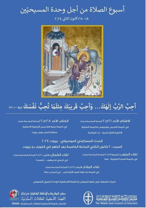 برنامج إحتفالات أسبوع الصلاة من أجل وحدة المسيحيين واليوبيل ال50 لمجلس كنائس الشرق الأوسط