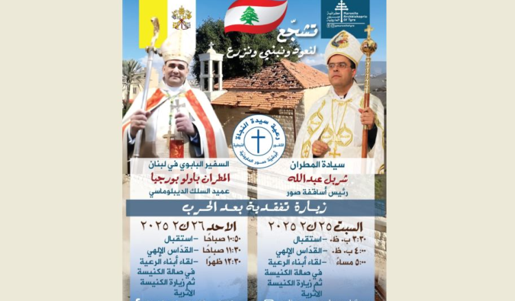 دعت رعية سيدة النجاة الكفور – النبطية وأبرشية صور المارونية الى “زيارة تفقدية بعد الحرب” للبلدة، بعنوان ” تشجّع لنعود ونبني ونزرع”، تتضمّن تجمعا واستقبالا لأبناء الرعية، الثالثة والنصف من بعد ظهر السبت المقبل الواقع في 25 الحالي.