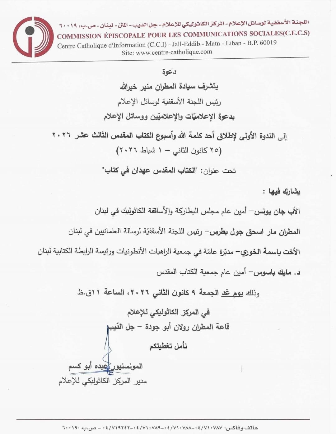 إلى الندوة الأولى لإطلاق أحد كلمة الله وأسبوع الكتاب المقدس الثالث عشر 2026